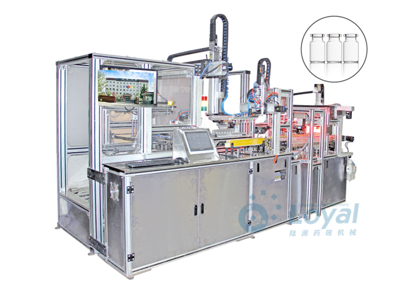 西林瓶生產(chǎn)線包括:自動(dòng)上管、自動(dòng)成型、經(jīng)機(jī)械手轉(zhuǎn)換至前端檢測(cè)線(也叫生產(chǎn)管控)、檢測(cè)線檢測(cè)的項(xiàng)目:1、瓶口內(nèi)外徑 2、瓶身長(zhǎng)短 3、瓶身外徑 4、瓶口邊厚 5、瓶底內(nèi)凹尺寸檢測(cè);經(jīng)檢測(cè)后的合格品再用機(jī)械手夾盤轉(zhuǎn)換至退火爐網(wǎng)帶上,經(jīng)高溫減除應(yīng)力后再降溫,通過(guò)氣動(dòng)吸盤將回火后的小瓶轉(zhuǎn)換至后端檢測(cè)線,后端檢測(cè)(也是重檢也叫終檢),經(jīng)后端拍照檢測(cè)項(xiàng)目